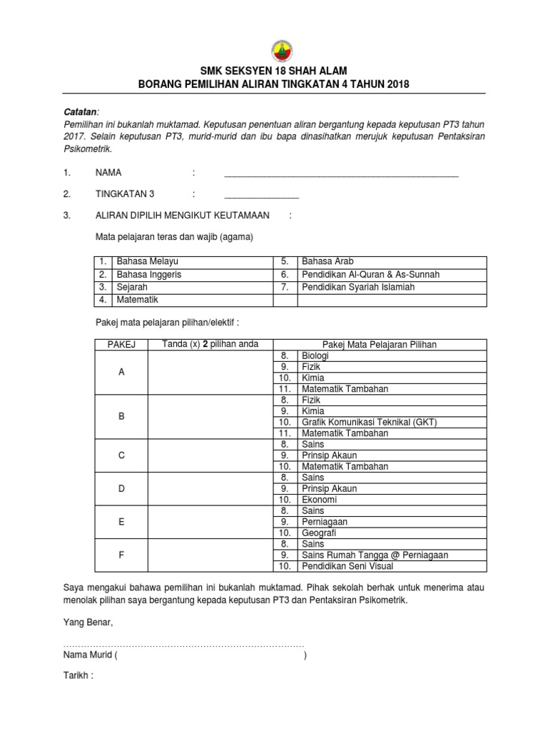 Senarai Aliran Tingkatan 4 5 Dan Mata Pelajaran Menengah Atas